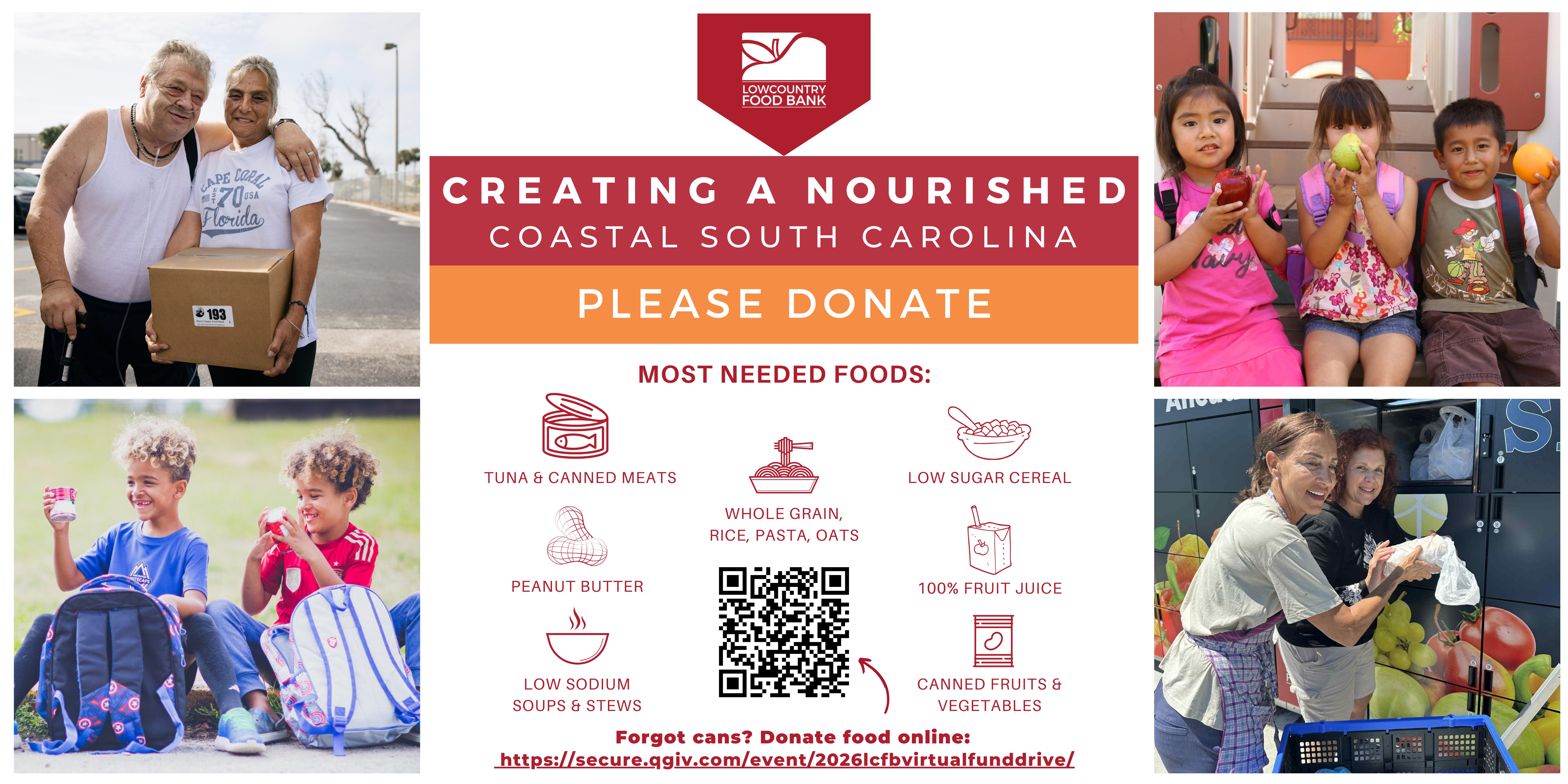 The best way to support Lowcountry Food Bank is to host a virtual fund drive – as a team or individual – or donate to our community online food drive. This will help provide the highest quality of food. Food items can be selected online!